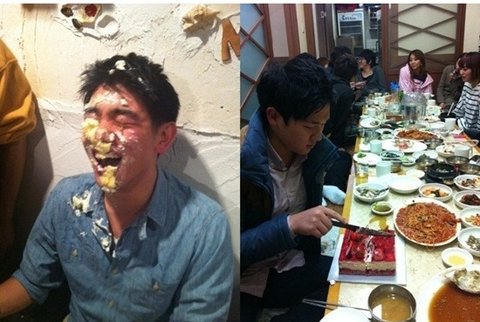 생일날 케잌 얼굴에 범벅하고 입벌리고 있는 에릭남ㅋㅋ