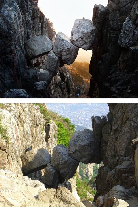 이산 중턱에는 큰 바위 세개로 만들어진 다리가 있는데,