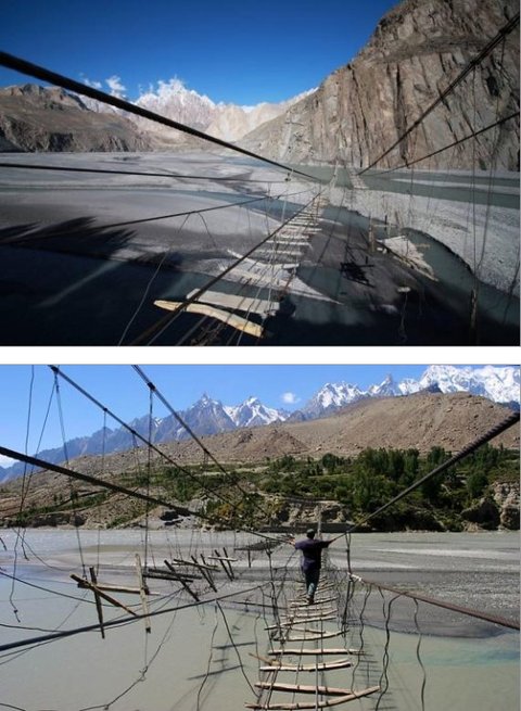세계에서 가장 위험한 현수교로 알려진 파키스탄의 이 다리는 어느쪽이건