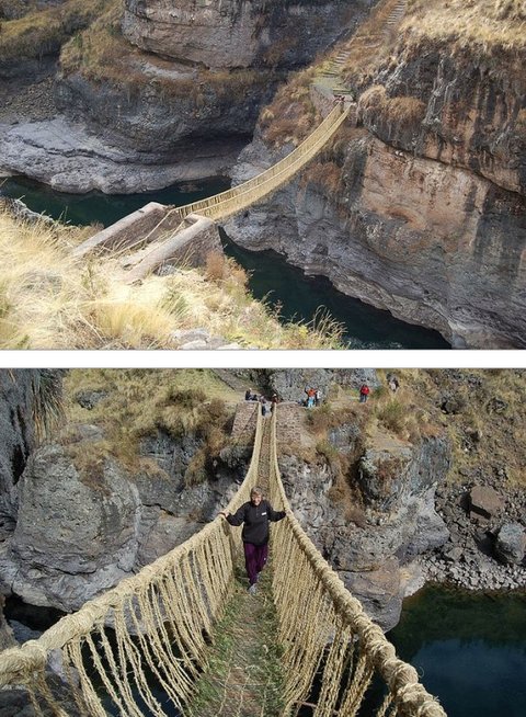 잉카 제국을 향하는 이 로프로 만들어진 다리는 고대 잉카의 건축 기술을 보여주고 있습니다.