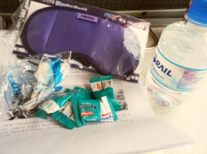 신문, 물, 수면안대, 이어폰, 과자, 사탕, 무선인터넷 정도로 요약가능하네요!