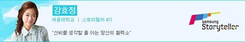삼성전자의 ‘전’의 이름을 딴 저니, 그리고 ‘자’의 이름을 딴 자니. 저니와 자니를 통한 귀여운 두 캐릭터를 통해 친근하고 소비자들의 공감을 이끌어 낼 수 있는 커뮤니케이션을 제안한 숙명여자대학교. 너무 깜찍한 캐릭터에 삼성스토리텔러의 눈이 초롱초롱 빛났었는데요. 캐릭터에 성격을 부여함에 따라, 차가운 도시 남자라는 속성의 자니가 소비자의 눈으로 냉철하게 제품에 대한 문제 제기를 하는 것이 인상 깊었답니다.