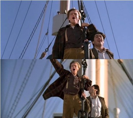 타이타닉 호 앞에서 신나게 소리를 지르는 장면으로 영화는 본격적으로 시작된다.