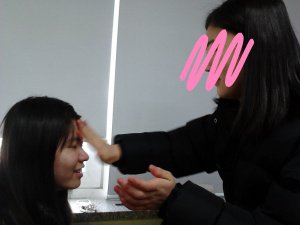 친구의 얼굴에 비비크림을 고루고루 펴 발라주었음 ㅎㅎ