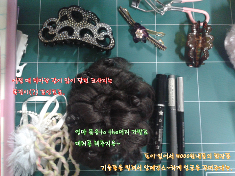 걍, 엄마가 하나 더 들고 있던 묶음 가발을 가져와서 머리 짧은 상태로