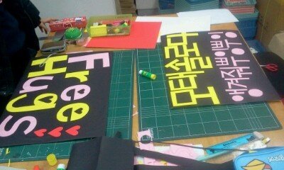 플래카드 문구 한~참 고민하다가 만들기 시작!