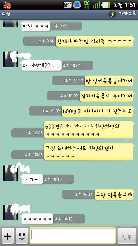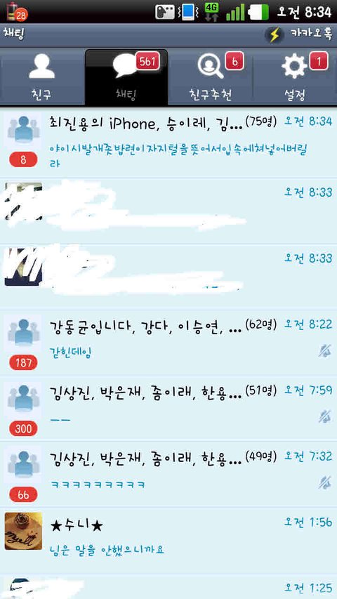이건 카톡 패치 방금 한 상태라 방이 막 만들어졌을때라 인원이 적은데