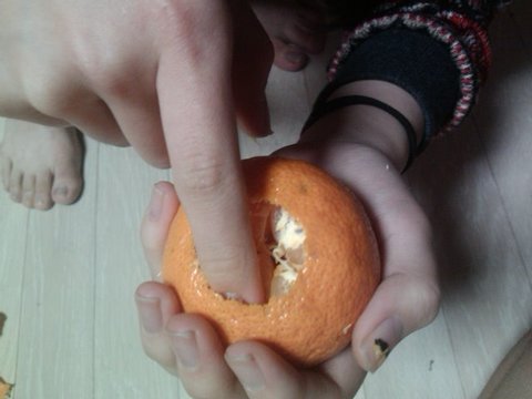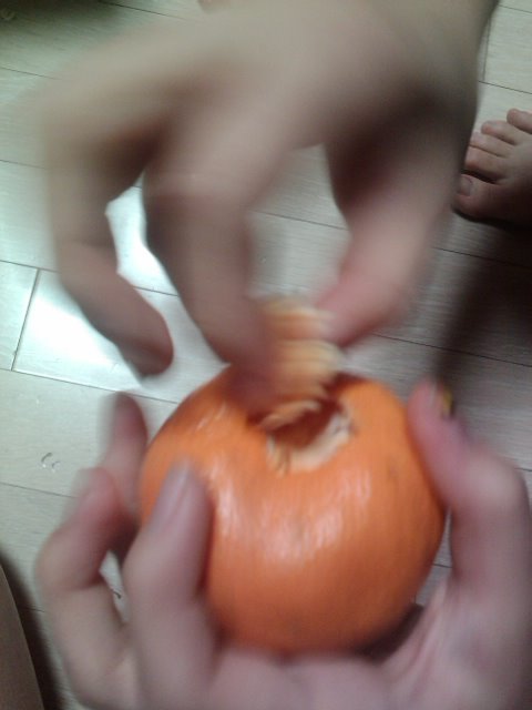 동그랗게 귤바닥(?)을 손가락으로 도려(?)냄