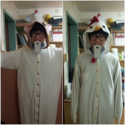 요로코롬 갈아입고 안경쓰고 마스크쓰고 사진을
