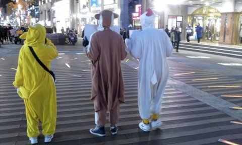 혼자 피켓 두개 들고 서있었음 ㅋㅋㅋ