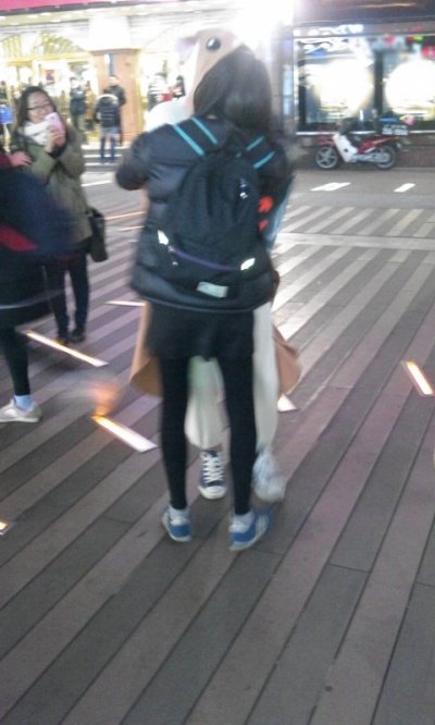 자라목에 허리 구부리고 친구랑 아 쪽팔려,쪽팔려