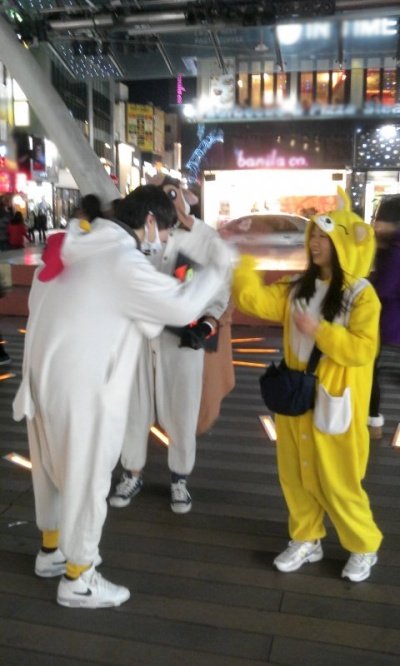 우리 말고 다른 한 파티가 프리허그를 하고있었음