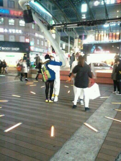 같이 프리허그하던 친구말고 다른친구가 뭐하는짓이냐며 좀더 앞으로 끌고갔음