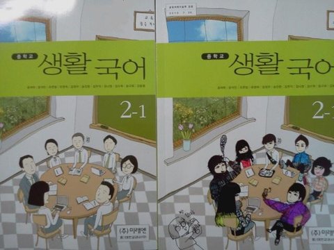 우선 사정을 이야기하면 는 지금 14살 중1이예여 다 언니들일 것같아서 우선 존댓말을 써요!!우리반에서 요즘유행중인 신개념놀이 교과서 이름바꾸기보더 훨씬잼있어여!!!!! 하지만! 교과서에 인물이 있어야함ㅋㅋㅋㅋ 중2가 되기위해 2학년 책을 받은 우리 기말고사가 끝나 수업진도도 다끝나고 게다가 학교에서도 영화를 보지 말라고 했기 때문에 엄청심심한 우리반 아이들중 한 친구가 교과서를 가지고 놀기 시작한것이 이 놀이의 발생(?)이였어여그래서 친구들이 보고 대박이다 이거 진짜 잘했는데 하면서 다 따라하기시작했죠 그중 우리반에서 가장 그림을 잘그리지만 미술 학원을 한번도 다닌적이 없는 나쁜 유전자를 가진 아이의 작품(?)이 가장 예뻐서 우리반 아이들이 야 이거 판에 올리면 톡될것같아 ㅋㅋㅋㅋㅋㅋㅋㅋ 이랬어요판이 뭔지도 모르는 아이도 있었지만 그래서 제가 대표로 올리게 되었죠ㅋㅋㅋㅋㅋㅋㅋㅋㅋㅋㅋ (사실 핸드폰에서 컴퓨터로 사진을 올릴줄아는 아이중 제가 가장 여유로웠어요ㅋㅋㅋㅋㅋㅋㅋㅋㅋㅋ)핸드폰 화질이여서 좋지는 않지만 감상해보세요ㅎㅎ