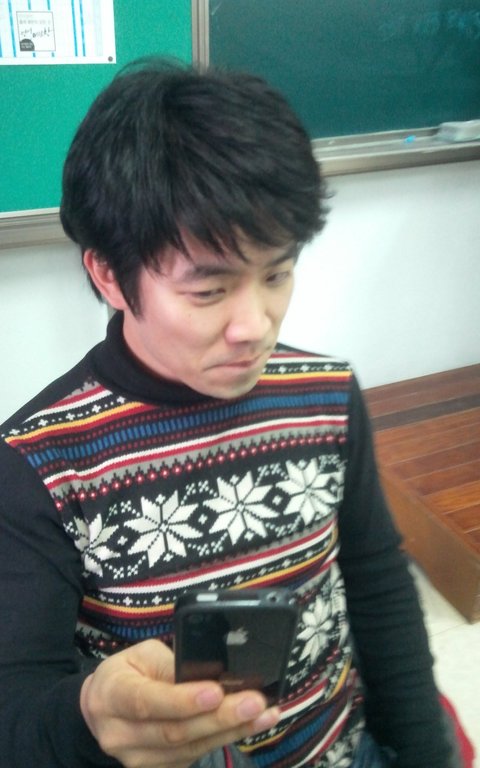 아이폰을 자랑하며 셀카로 머리상태 확인하시는