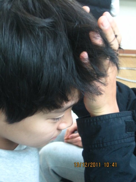 하여튼 그 머리는 진짜 아닌 듯 싶어서 여자애들이 손을 봐줌 조물조물