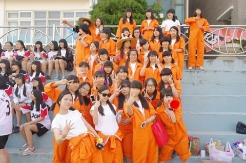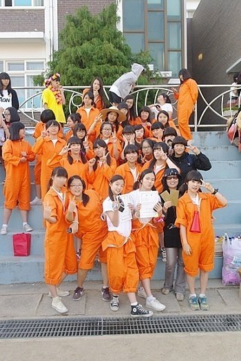 그리고 우리반은 남들과는 다르게 형광삘이 나는 오렌지 점프수트를 반티로 맞춤ㅋ,,