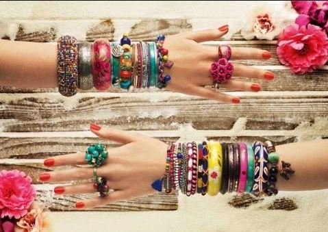 화려한컬러감과 약간을 볼드한 반지 그리고 역시 뱅글이