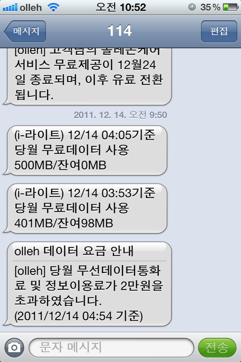 데이터 소진시 바로 알림을 하여 대처할수 있게 해주시던지 모든 데이터 사용시 차단을 해주는 시스템을