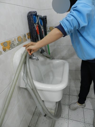 다시 물을 세게 틀고 소리를 지르며 행궈냄