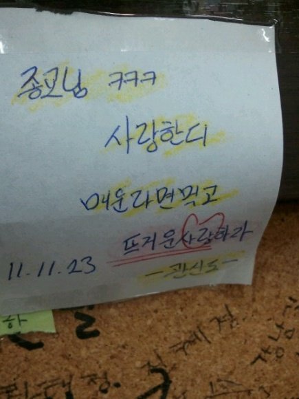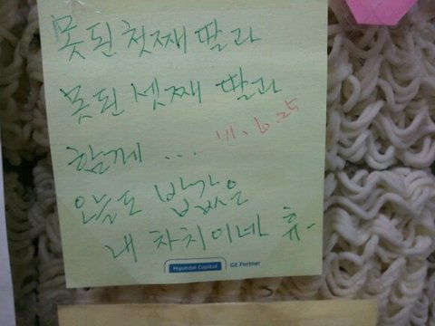 손님들은 라면 나오길 기다리면서 포스트 잇에다가 손님들의 일상을 마구 쓰심ㅋㅋㅋㅋㅋㅋㅋㅋ
