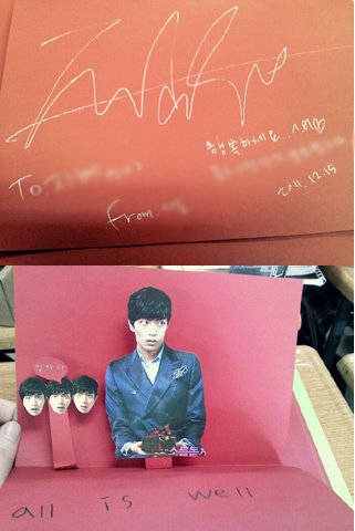 항상 싸인을 해줬뀨! 그리고 이민기에게 빠진 반 친구에게 all is wellㅇㅣ라 쓰고