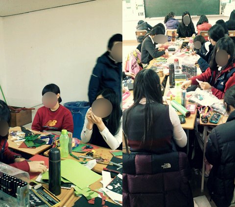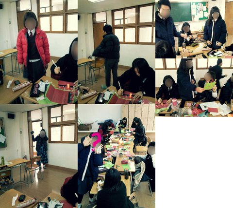편지를 써주기 시작함 그리하여 같이 준비물을 들고온 친구들6명과