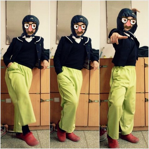 그리고 빛나는 샤이닝 블링블링 우리학교 체육복 바지와 시장에서 구매한 농촌레드슬리퍼의 매치로