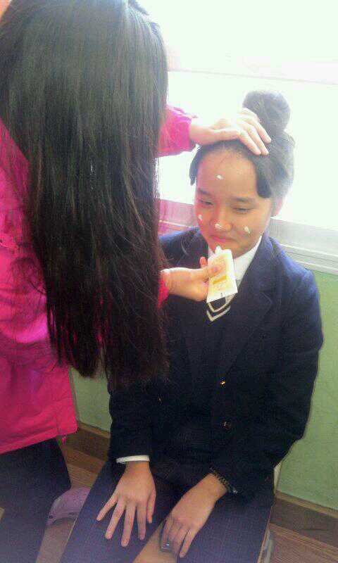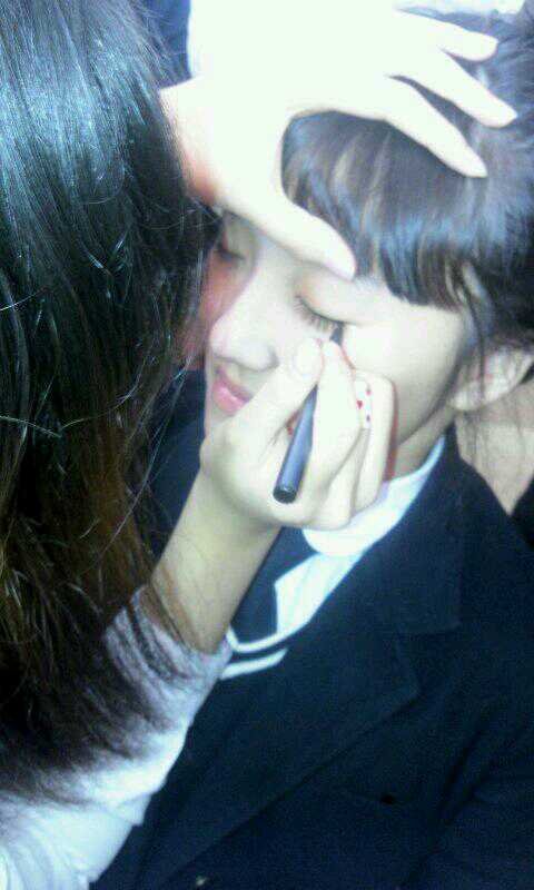 우린 아이라인 진하게 안 그렷음 꼬리도 안 빼고 그냥 라인만 그림 .. 우린 중학생답게 하려고 >_< 뿌잉