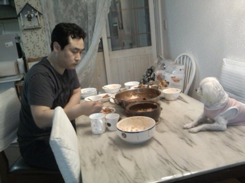 아빠의 식사를 일편단심으로 바라보다가