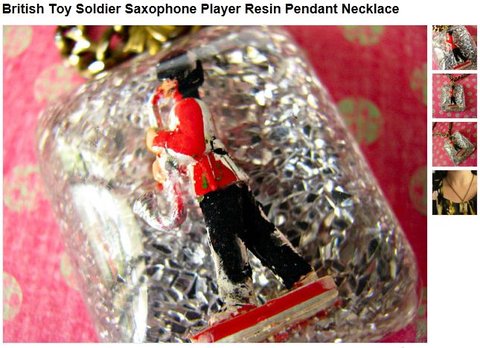 British Toy Soldier Saxophone Player Resin Pendant Necklace