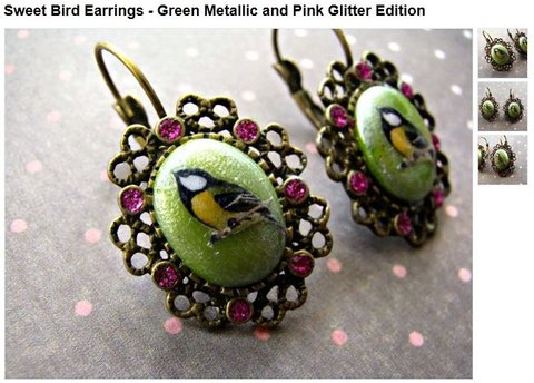 Sweet Vird Earrings - Green Metallic and Pink Glitter Edition