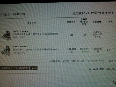 12월 9일(금)에 온라인으로 닥스 케시미어 목도리를 거의 50%할인된 가격에 현대카드를 이용해 청구할인7%까지 받으면서 물건을 구매했습니다. 그러나 물건은 일주일이 되어도 도착하지 않았습니다.