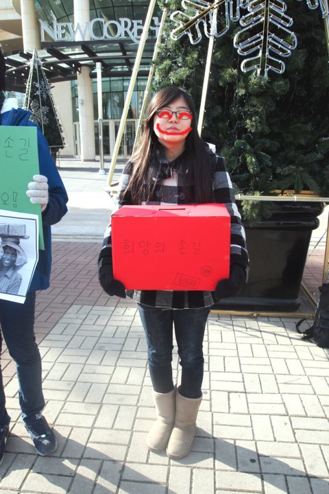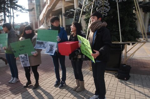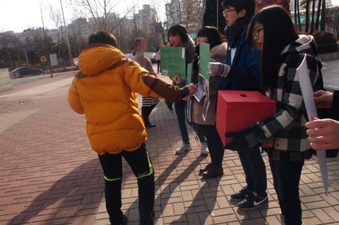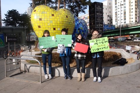 그래서 어제(17일) 인형을 만들고 오늘(18일)!! 홍보를 하러 다같이 모였어요