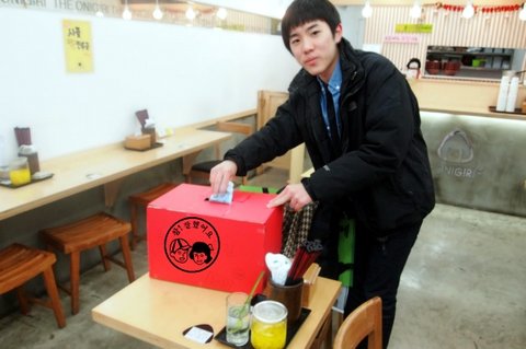 식당에 도착해서 우리도 당연히 기부해야되지 않겠어? 하고