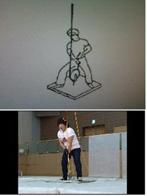높이 7m, 200kg 무게를 견딜 수 있는 밧줄, 가로 60cm 세로 70cm 판, 움직도르래 고정.