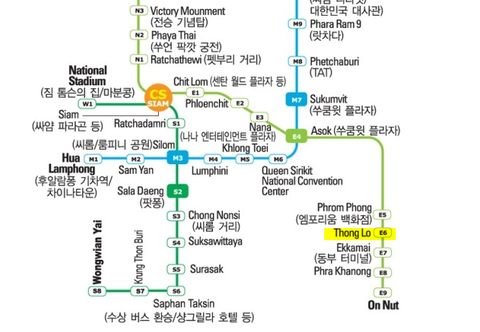 목적지는 노란색 표시된 ' Thong Lo ' 역 이에요.
