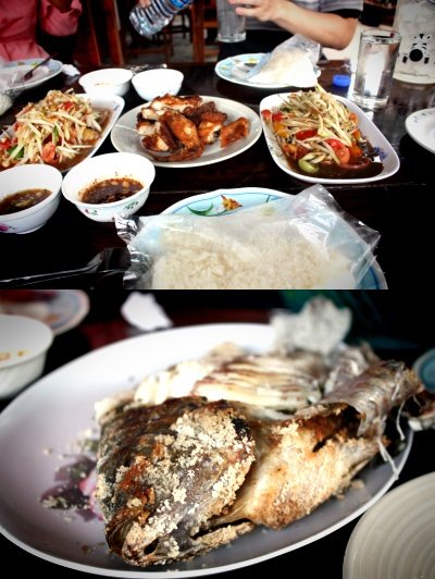 쫀득한 스티키라이스와 쏨땀 이랑 생선 앤드 치킨