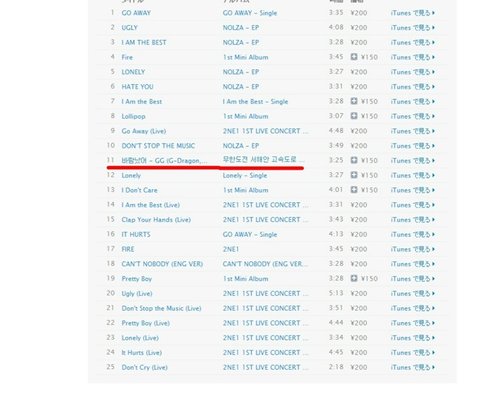 아이튠즈에 올라와있는 차트입니다 빅뱅에서는 바람났어를 찾아볼수없어요 하지만 엉뚱하게도 2ne1에 앨범이 있네요?? 정말이상하죠???바람났어는 누구의노랜가요..