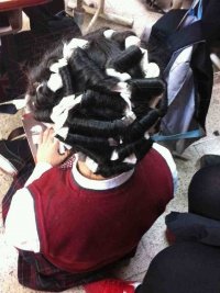 혹시 스팀을 가하면 컬이 더 잘나올까...하는 예고녀들의 뻘짓..