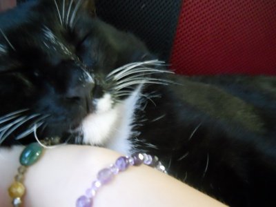 콧구멍에 머릿카락을 살랑사랑 거려주니까 벌떡 일어나더니 다시 베란다에가서 상자위에 자리를 잡더군..