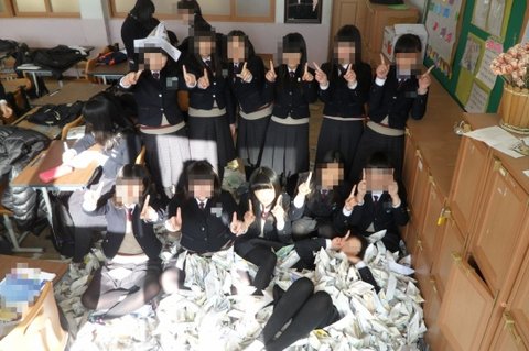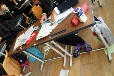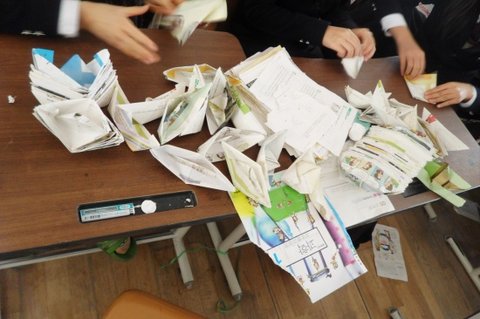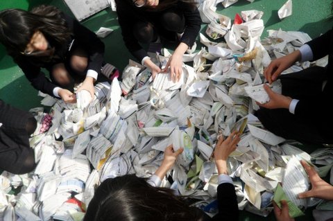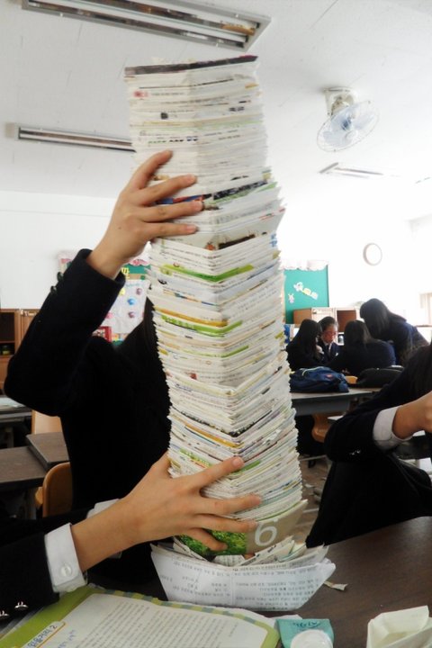 우리반 1등도 문제집을 깔고 배를 접음