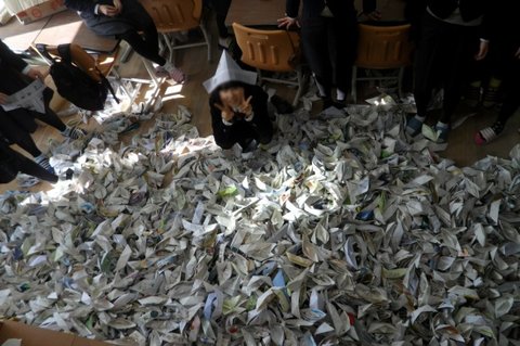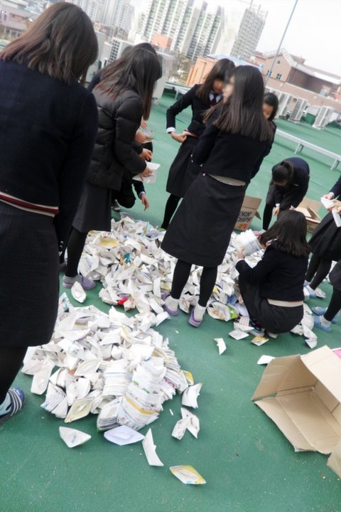 우리는 다 쓴 교과서를 찢기 시작함!!!
