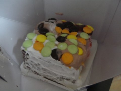 생크림이 상자에 짓눌려 망가진 모습을 관찰할수있슴..