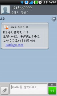 국민은행이라면서 문자가 왔는데 항상 같은 번호로 오던 국민은행문자가 다른 번호로 왔음.