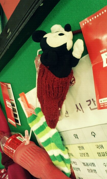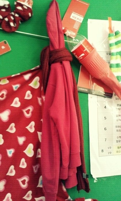 양말을 가방에서 주섬주섬 꺼내서 아무것도 없는 게시판에 걸엇음ㅋ