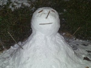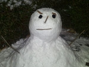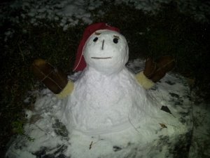 눈쌓인 조그만 바위 위에 눈사람을 뿌리박기로 결정
