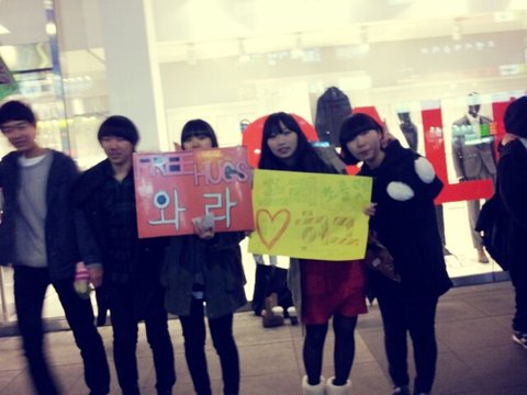 처음에 막 쭈뼛쭈뼛거리면서 여기옆에서 프리허그하고 춤출껀데,...갠찬아여...? 이랫는데