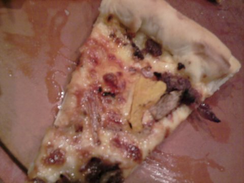 토핑이 얇다못해 밑에 발라져있는 토마토소스가 빨갛게 드러나있는 모습.
