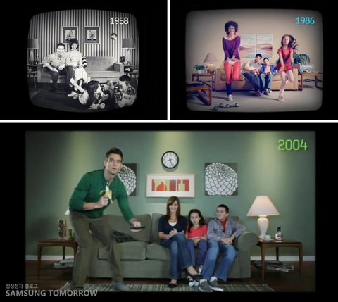 이 동영상에는 1958년 흑백 브라운관 TV의 등장 이후 60년간 가정에서의 TV 사용 모습들을 재미있게 표현하였는데 1969년 컬러 TV를 통한 인류 최초의 달 착륙 보도, 1986년 등장한 TV 리모콘, 2004년부터 확산된 DVR(Digital Video Recorder, 디지털 영상저장장치)을 통한 프로그램 녹화 시청, 2010년 3D TV로 스포츠 경기를 관람하는 가족의 모습들을 그려 냈습니다.